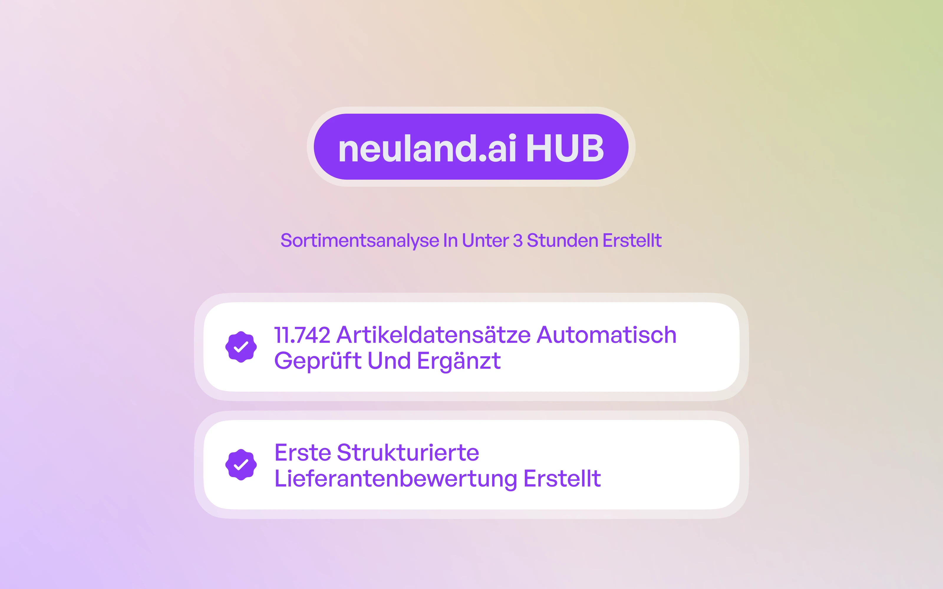 Der neuland.ai HUB automatisiert wiederkehrende Aufgaben in Einkauf, Produktdatenpflege und Lieferantenkorrespondenz. Artikelbeschreibungen und Bestellvorschläge entstehen schneller und konsistenter.