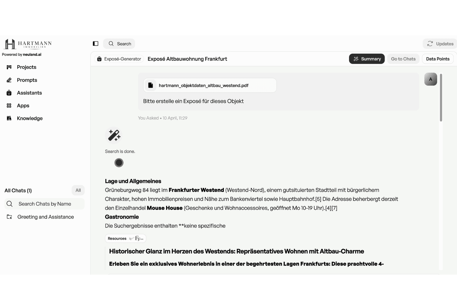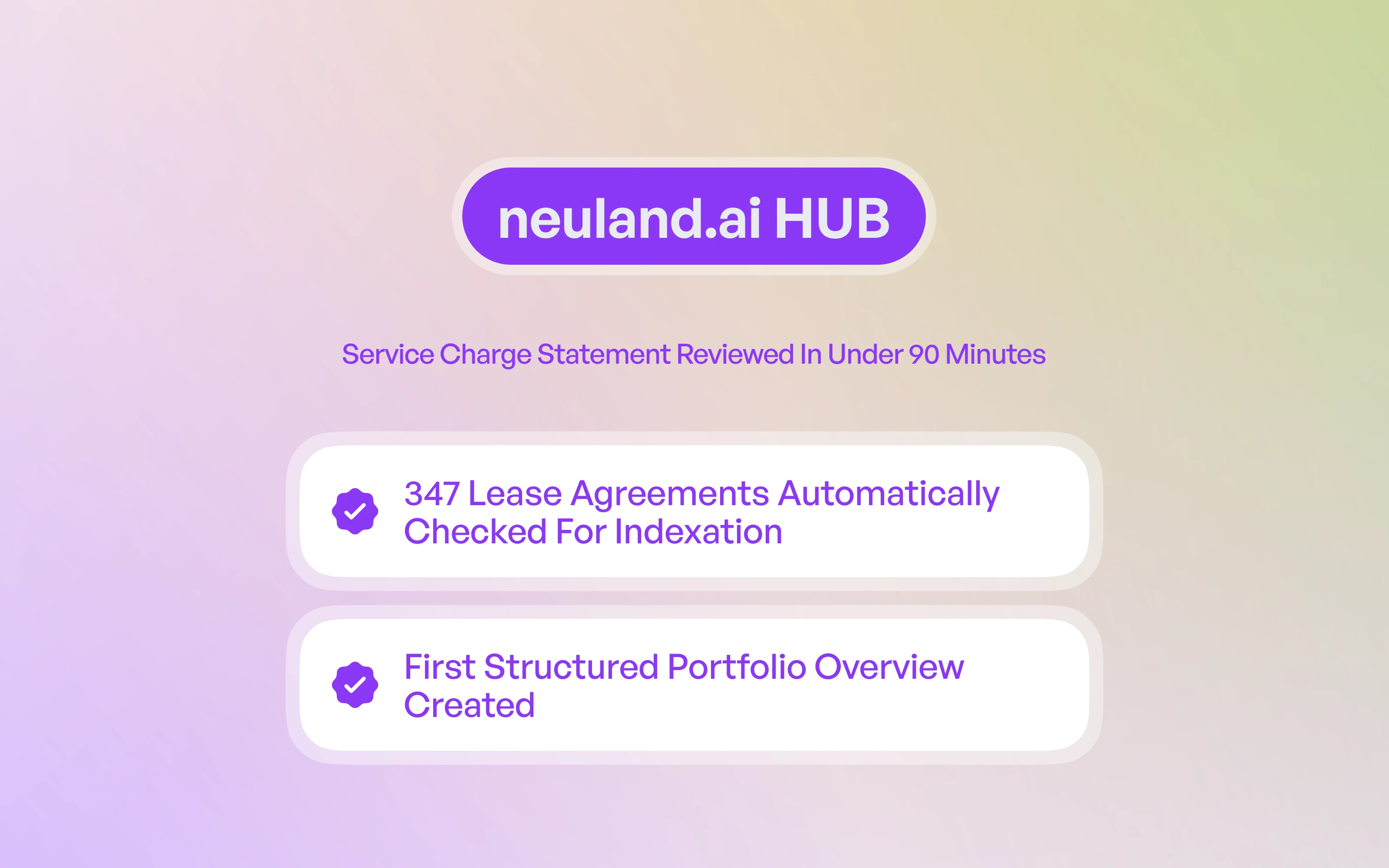 Der neuland.ai HUB verknüpft Objektdaten, Mietverträge und Marktinformationen. Ergebnisse sind nachvollziehbar, quellenbasiert und für bestehende Verwaltungssysteme aufbereitet.