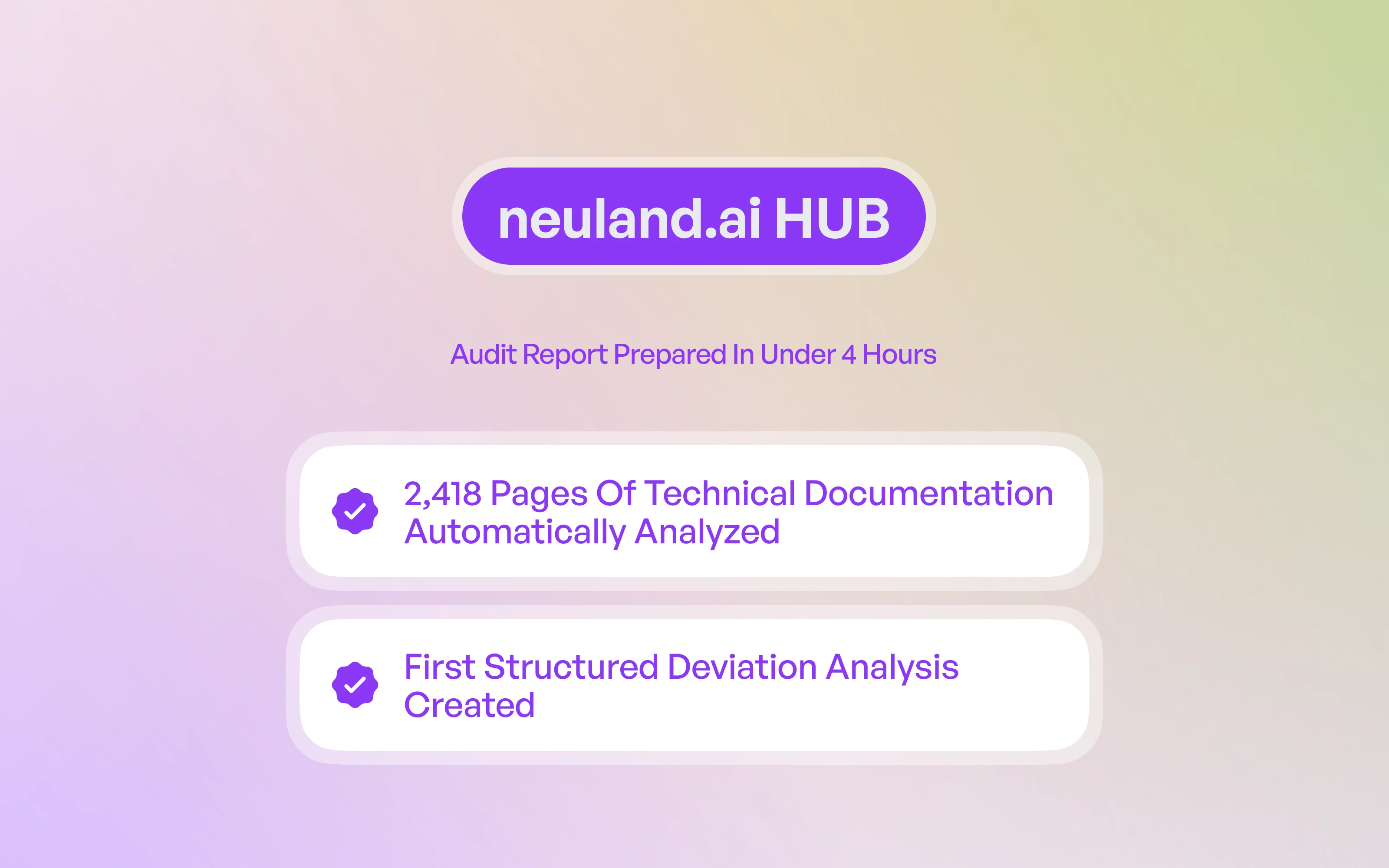 Skills shortages, increasing documentation obligations and growing supply chain compliance requirements are putting manufacturing companies under pressure. The neuland.ai HUB brings AI into your technical and commercial processes – standards-compliant, auditable and integrable within your existing system landscape.