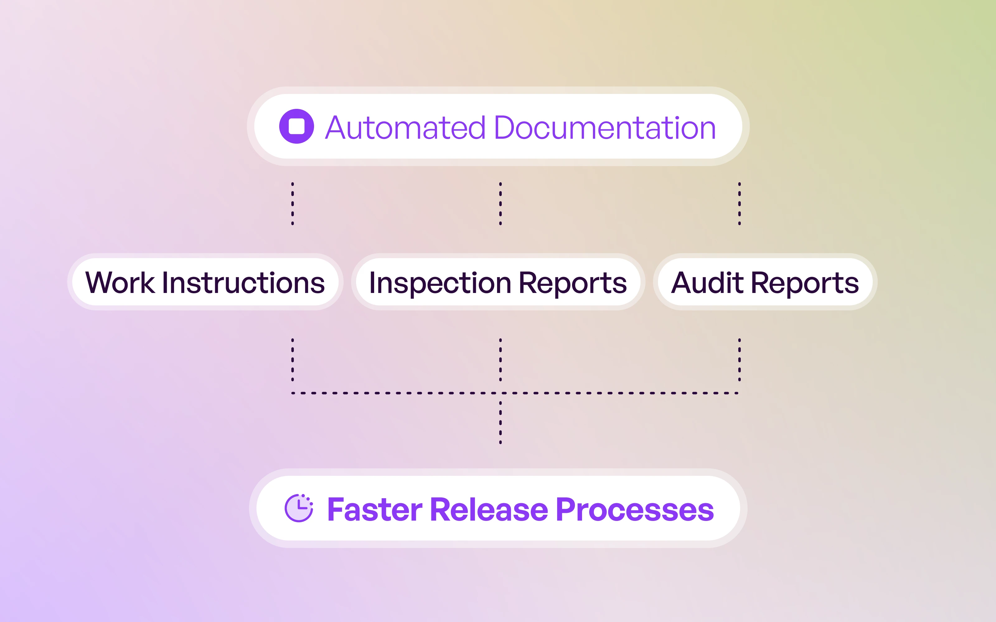 Create work instructions, inspection records and quality reports faster. Use existing manufacturing knowledge systematically for training and error prevention.